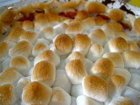 As my family began our own traditions, all favorite dishes had marshmallows; sweet potatoes topped with giant toasted marshmallows, Waldorf salad with colored marshmallows and ambrosia with tiny white marshmallows.