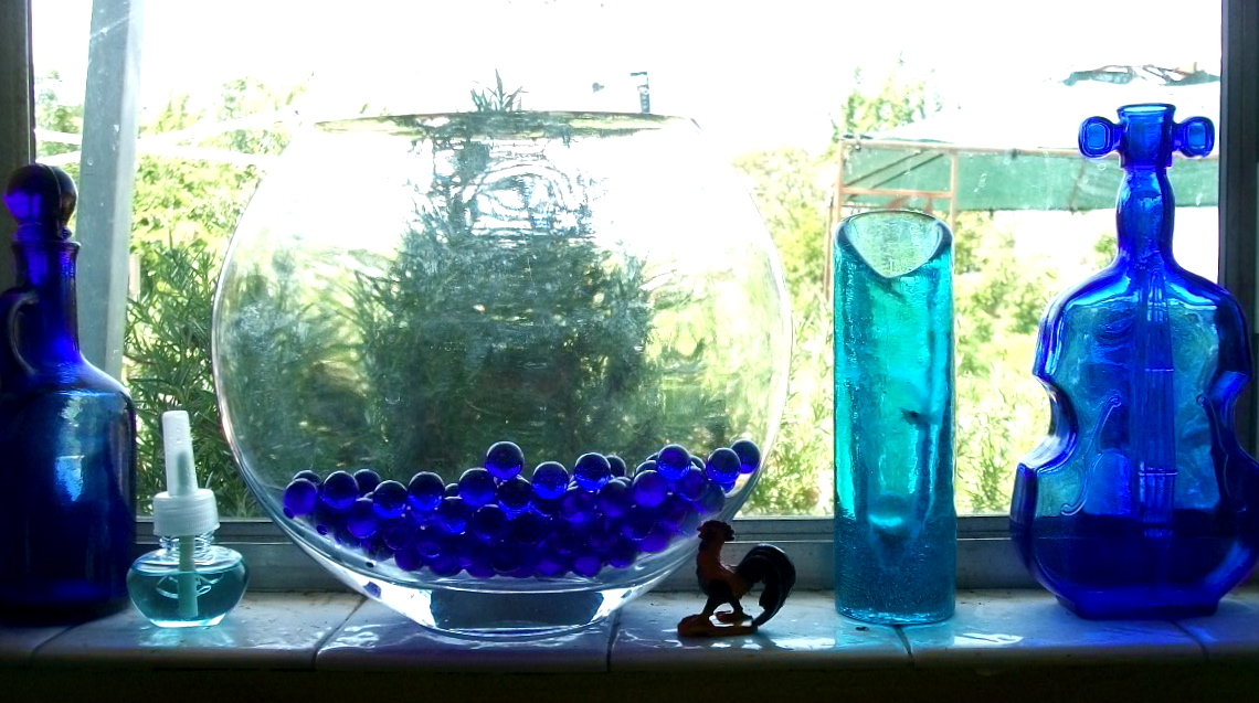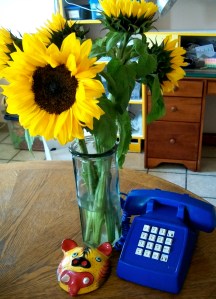 I visit the paint and garden department at hardware stores just for fun and inspiration. These days I can easily spot places in my life that need color… like my 1970’s old-school beige house telephone. It’s now very blue and much happier.