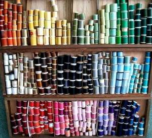 Since then I’ve been spontaneously throwing paint around, coloring my hair and reaching for bright colors in my closet. I’ve been down with a cold the past few days and I’ve been trying to take it easy so I sat myself down and organized my thread… you guessed it, by color.
