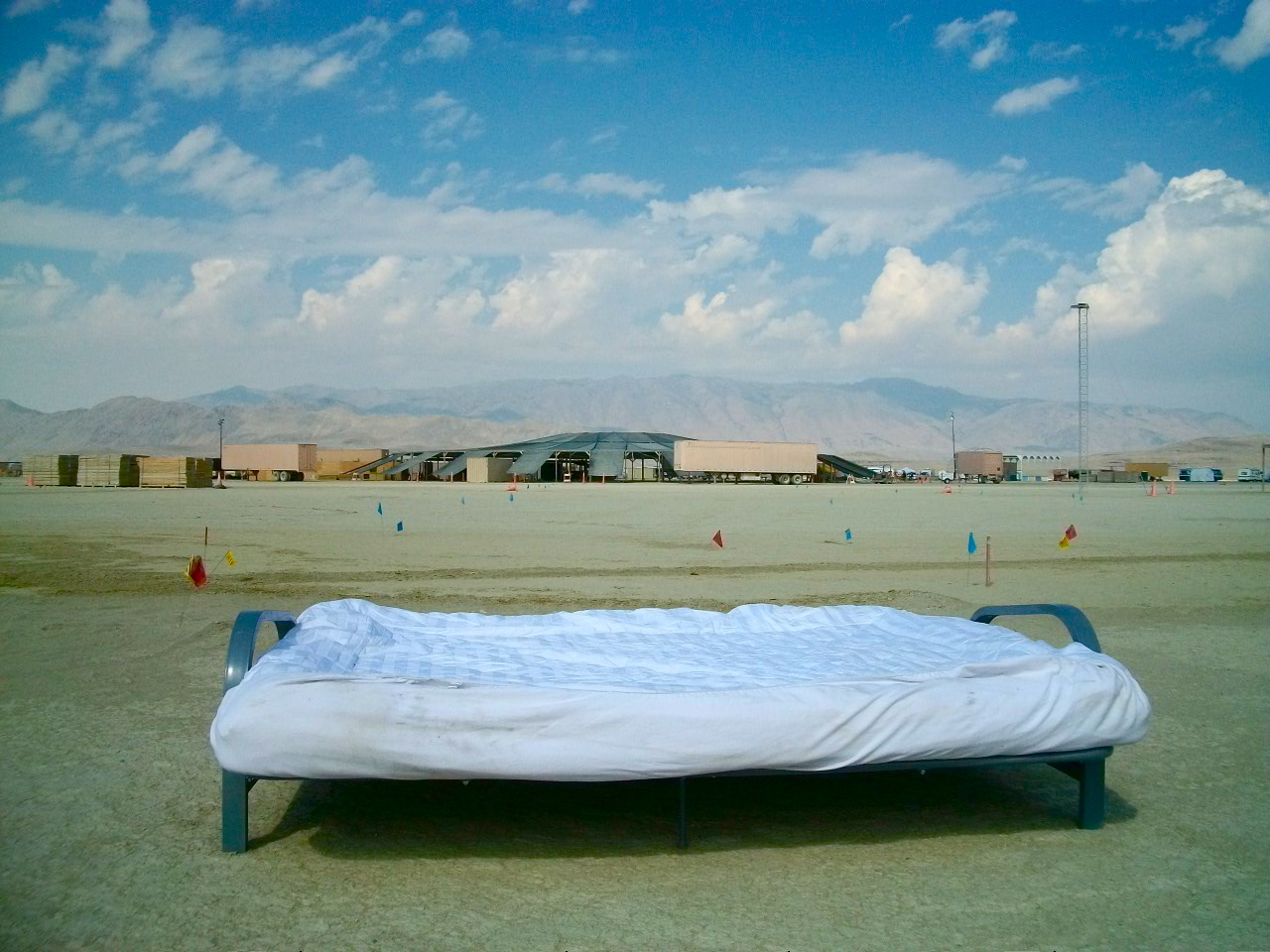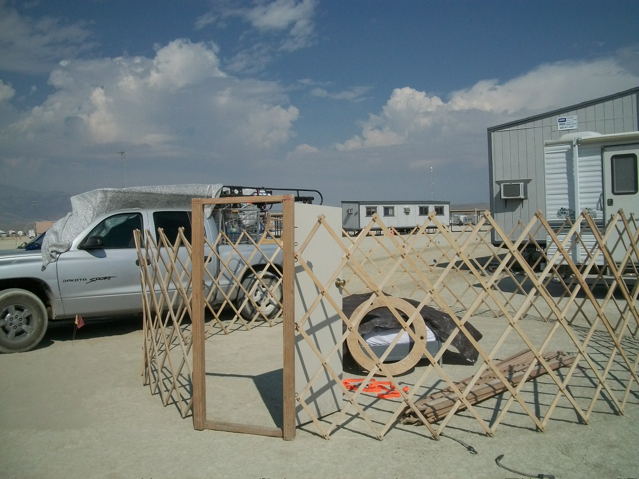 With the help of campmates, Eli and I set up the yurt that Loki loaned us. We built it up around the REAL bed I brought. This was a first… I figured it was worth the effort since I’d be on playa for such a long time.