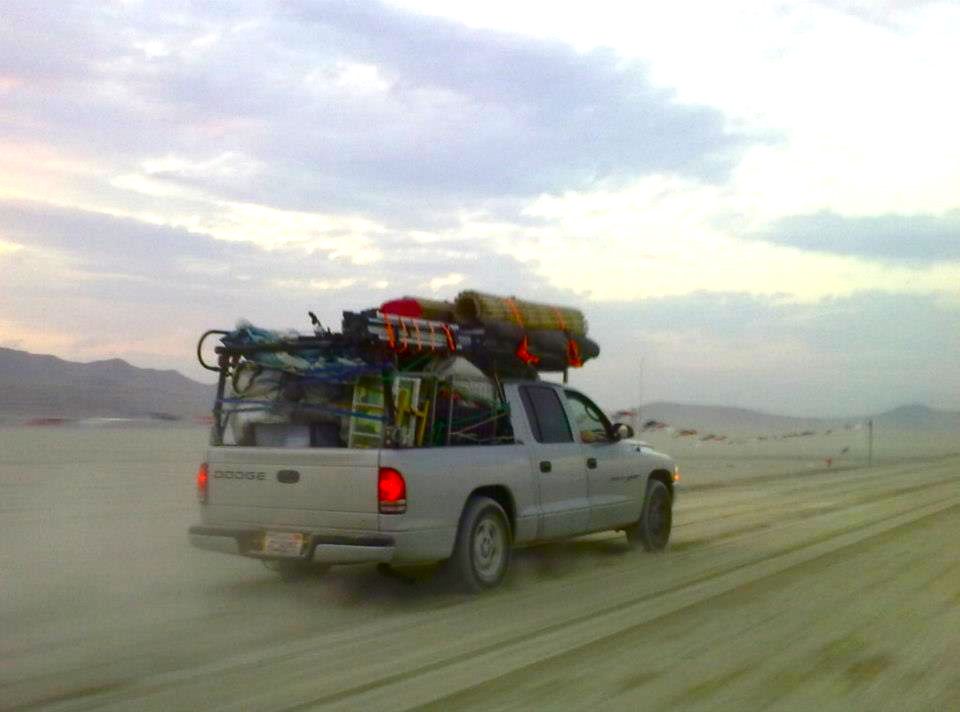 We arrived at sunset to a relatively empty playa. Our campmates already had the shade structure set up so camp was easy to find in the dark.