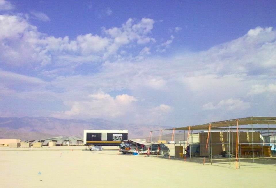 We spent our first night out on the open playa… we set up our bed between our vehicles and covered it with shade fabric. The air was warm, dust was very low and the night was clear… a great way to start my burn.