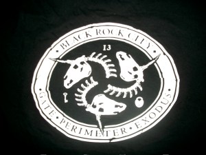 Although the Gate crew is know for it’s raw edge, profanity, love of whisky and porn, their commradery, organization and stamina inspired me. For a bunch of hard edge rough necks, I was surprised to see Unicorns on this year’s logo.