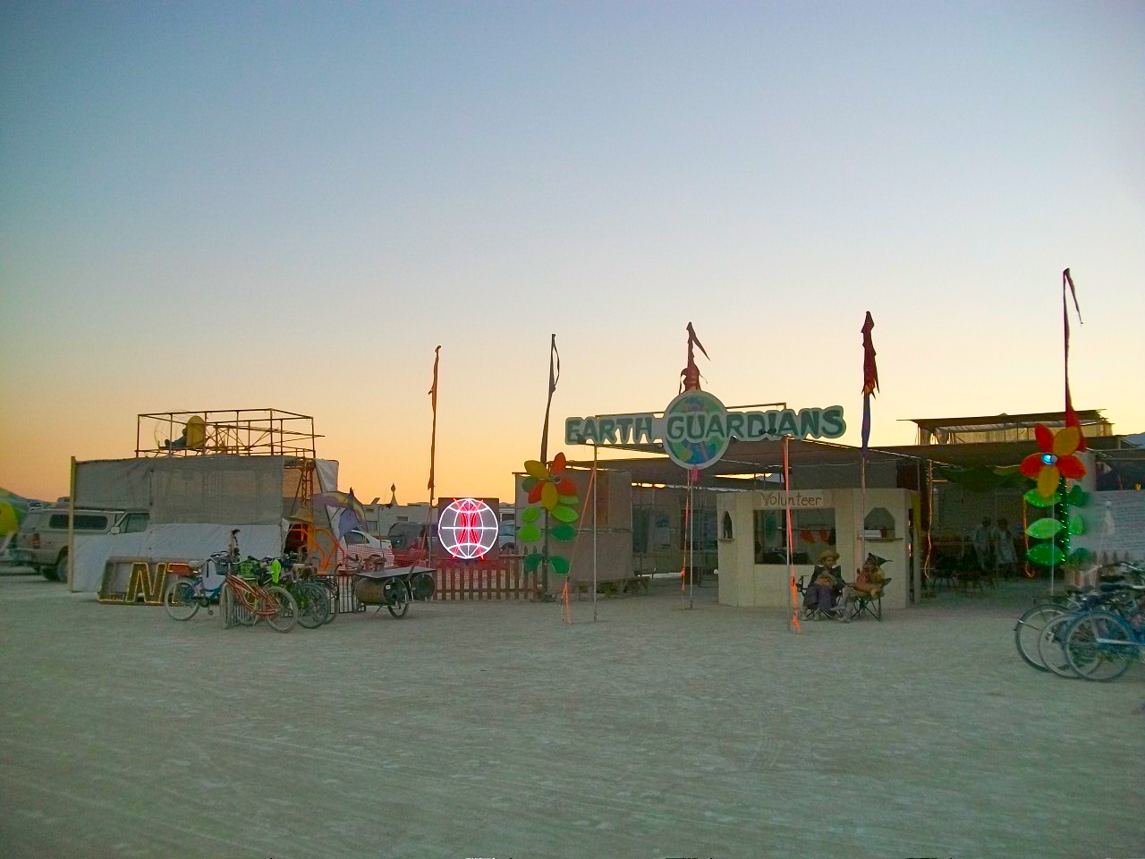 On Sunday Black Rock City begins to disappear. Overnight, art cars are disassembled, theme camps vanish and the city shrinks. For us, it’s all-hands on deck as we tear down the Pavillion and pack up camp. By afternoon, in a flurry of tools, poles, bins and ladders, Earth Guardians camp and our art car was broken down.