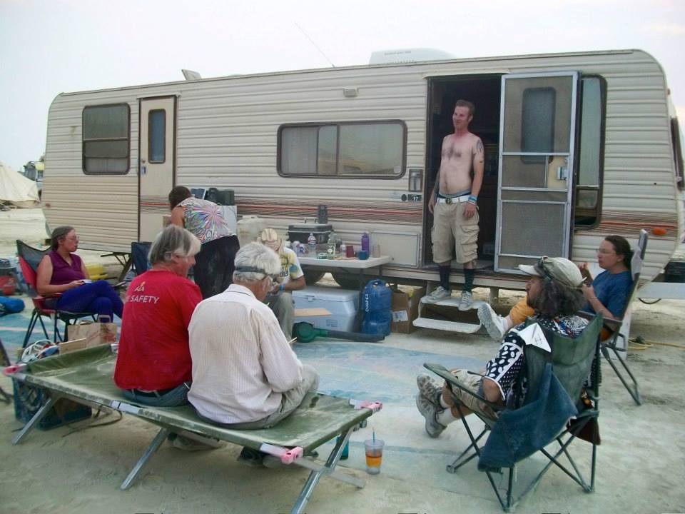 Eli and I had grand plans of cruising the playa with our bitchin’ art car, but once that plan died, we kind of lost ambition to get out. Because Eli spent all his prep time on the art car, he wasn’t able to prep his bike so he was bikeless. Getting around on foot is exhausting and limiting so stayed closed to camp.