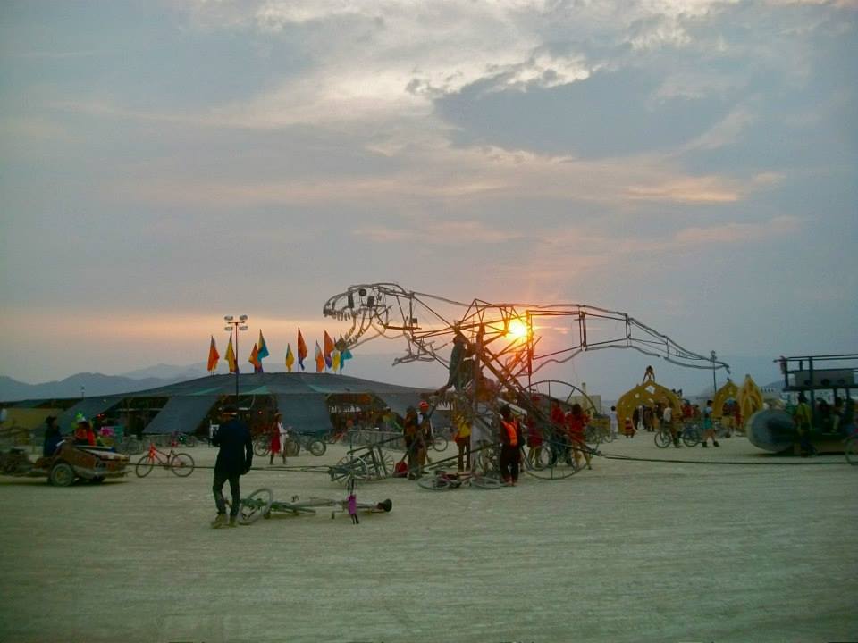 By mid-afternoon Sunday, BMIR radios warned that a rain storm coming on Monday. When it rains on the playa, the dust turns to cement and you can’t drive. The Org was recommending that people consider an earlier departure to avoid getting caught in the mud.