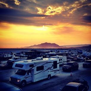 Moments after hitching Betty Dawn to Dusty, the glow from the Temple Burn lit up the sky. This meant we missed our opportunity to leave quickly. We scrambled to wrap it up and Eli helped me navigate Dusty and Betty out of camp. When he went to hop in his car, he found the battery to be dead. Ugh…