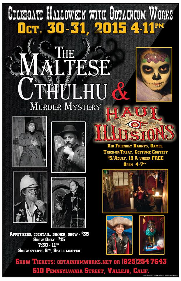 TICKETS: $35/pp Cocktails, appetizers, dinner and show for only. $15 for Show only. obtainiumworks.net/2015-haul-o-ween/