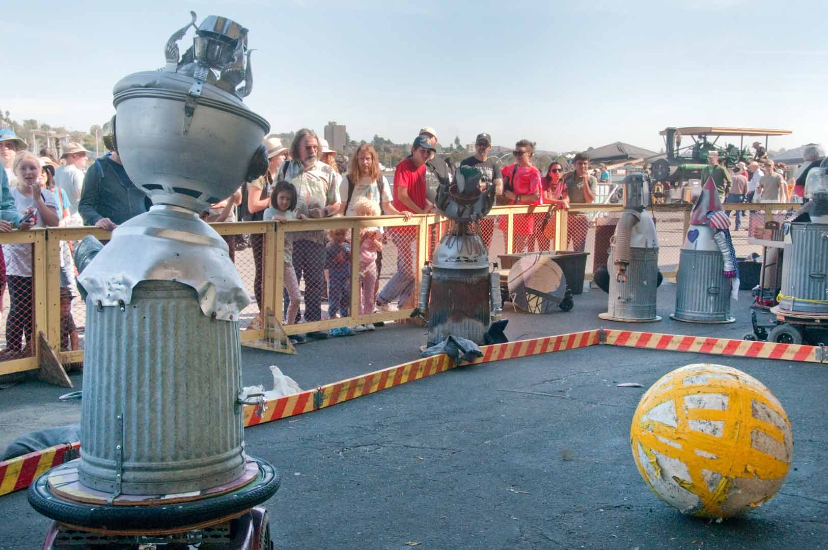 We had another great Bay Area Maker Faire on Mare Island with Shannon O’hare and Obtainium Works. Eli and the crew hosted Robot Rumble, the Remote Control Trash Robot Games. Attendees were able to drive a robot in a game of soccer.