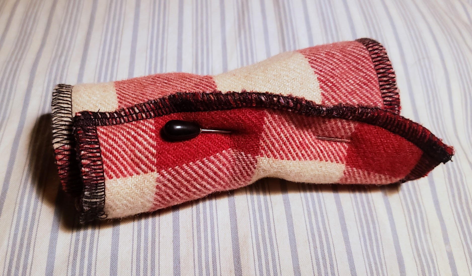 - Use another fabric for the outside of the roll, ideally a woven piece of fabric that doesn’t stretch. I made mine from a piece of a wool shirt.