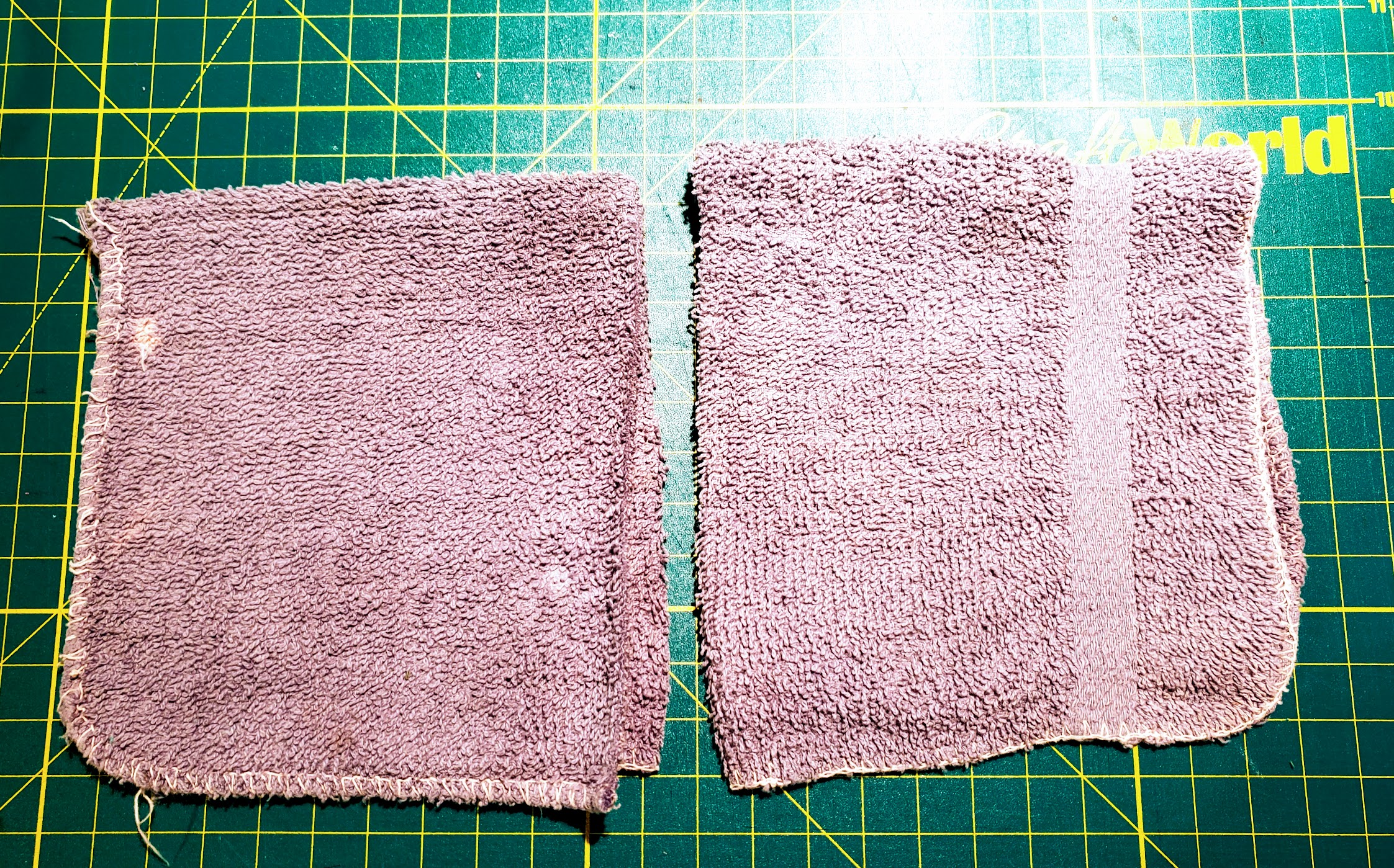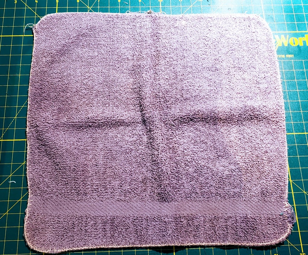 Step 1: Cut the towels into rectangles so you can fold them in half to make a square.