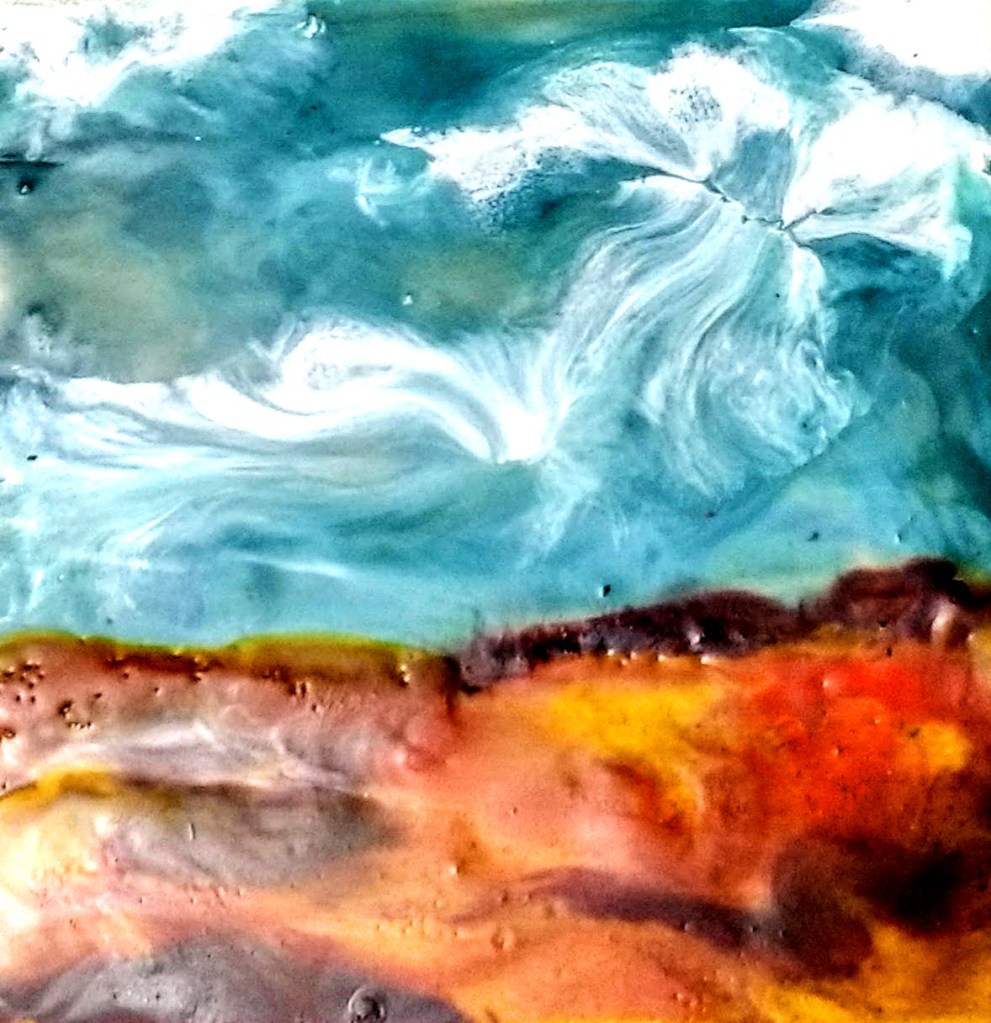 Encaustic painting is an ancient hot beeswax medium, that is applied as hot molten pigmented beeswax. It pre-dates oil paint with it’s history rooted in ancient Egypt and Greece. The work encaustic means “to burn in” in Greek.