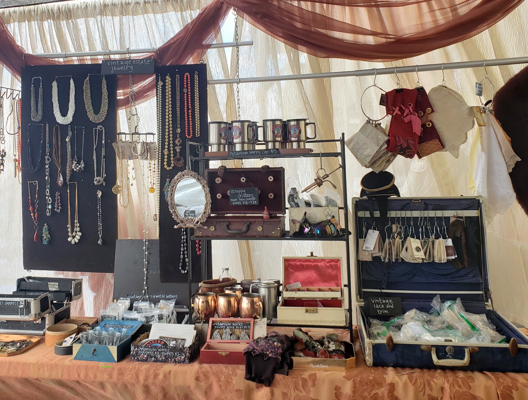 Booth Signage: Make or order a banner with grommets, with your business name and simple description or motto. Custom Banners available on Etsy or Vistaprint . Create rigid signs for specific product, if you don’t want to price things individually.