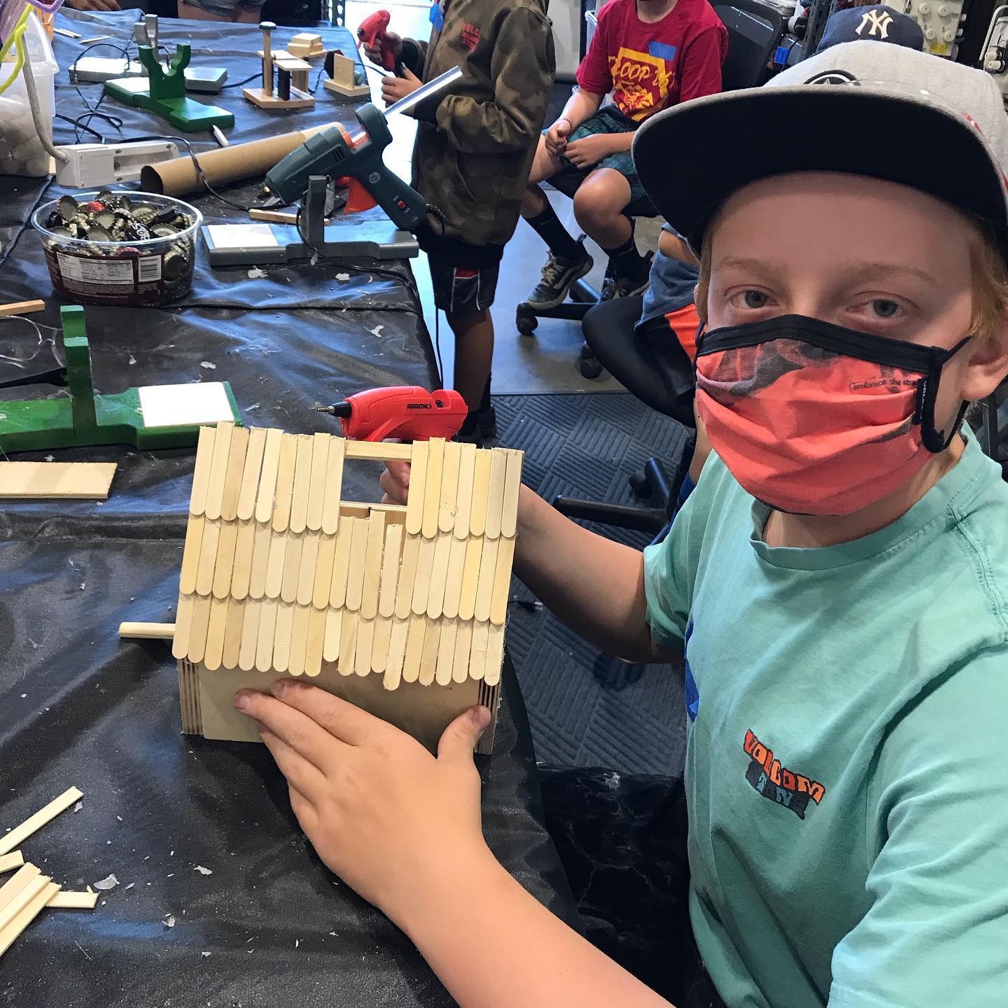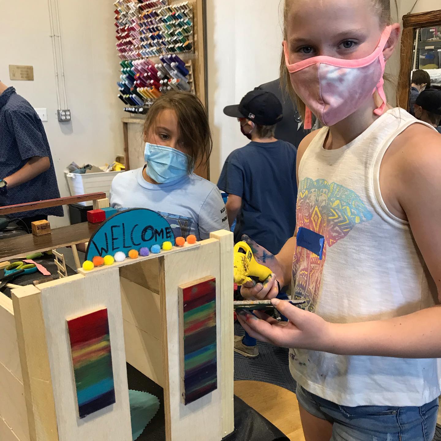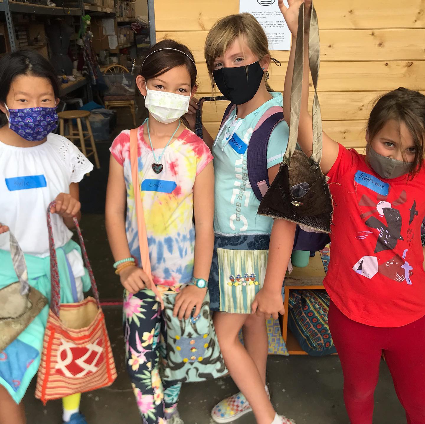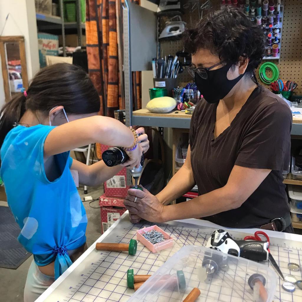 Students learn basic construction principles and how to safely use tools, all while expressing their creativity and learning problem-solving skills. Instruction includes the use of hot glue guns, drills, drivers, fasteners, wire, hand tools, sewing machines, and hand-sewing tools. Lessons also include the importance of upcycling, recycling, and how to reduce the consumption of plastics.