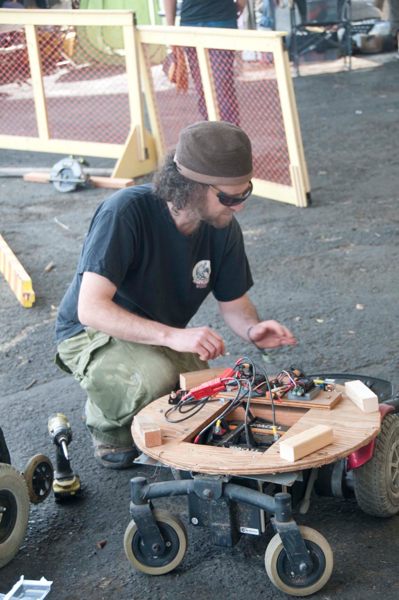 As a crew member of Obtainium Works, a Steampunk Art Studio in Vallejo, Ca., Eli co-founded Robot Rumble, an interactive community-outreach project where spectators can battle remote-controlled robots, made purely of Obtainium.