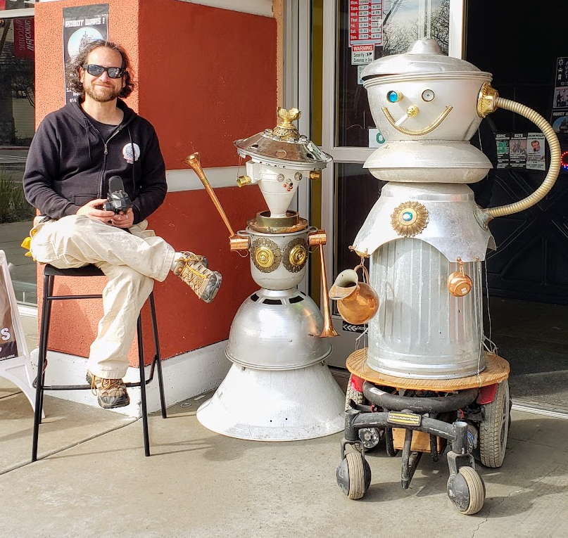 Built on a mobility scooter base, each robot is made from trash cans, old equipment and random metal parts, attached in a variety of ways. The program teaches and inspires others to turn trash into art, while learning fabrication and tech skills. Eli’s experience in aeronautical engineering, fabrication, drafting, architecture and electronics technology has been valuable to the program.