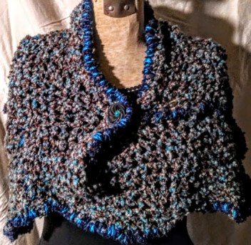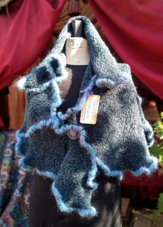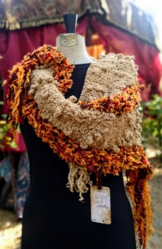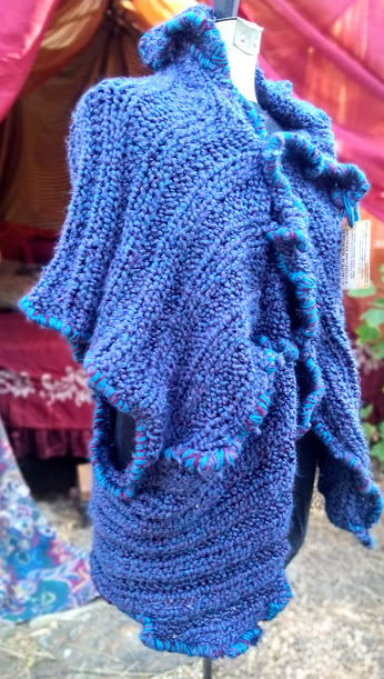 I hand-stitch these Wraps, Capes and Ponchos out of upcycled sweaters, scarves and second-hand yarn.